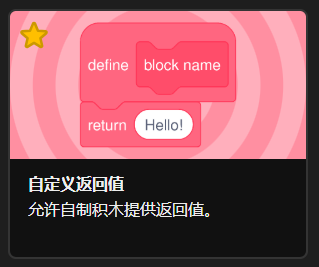 点击编辑器左下角的按钮(与“画笔”等扩展所在位置相同)来打开扩展库,然后启用“自定义返回值”: